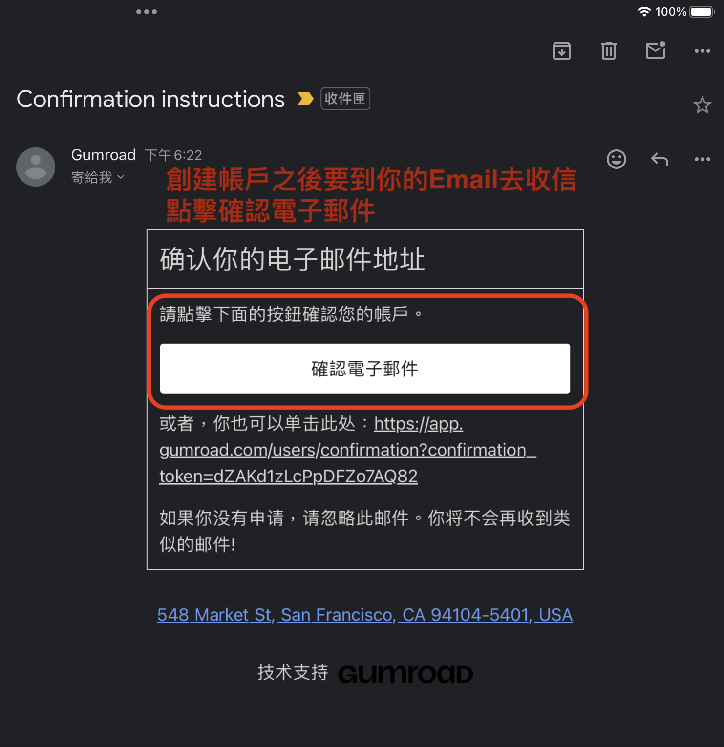 回到你的 Email 信箱收信。應該會有一封標題為:Confirm Instructions 「確認指示」的一封信,點擊確認電子郵件即可: